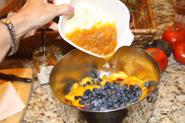 Microwave preserves in a large microwave-safe bowl at HIGH 30 to 45 seconds or until melted. Toss peaches and 1 1/2 cup blueberries with warm preserves. Stir in granulated sugar and next 2 ingredients.