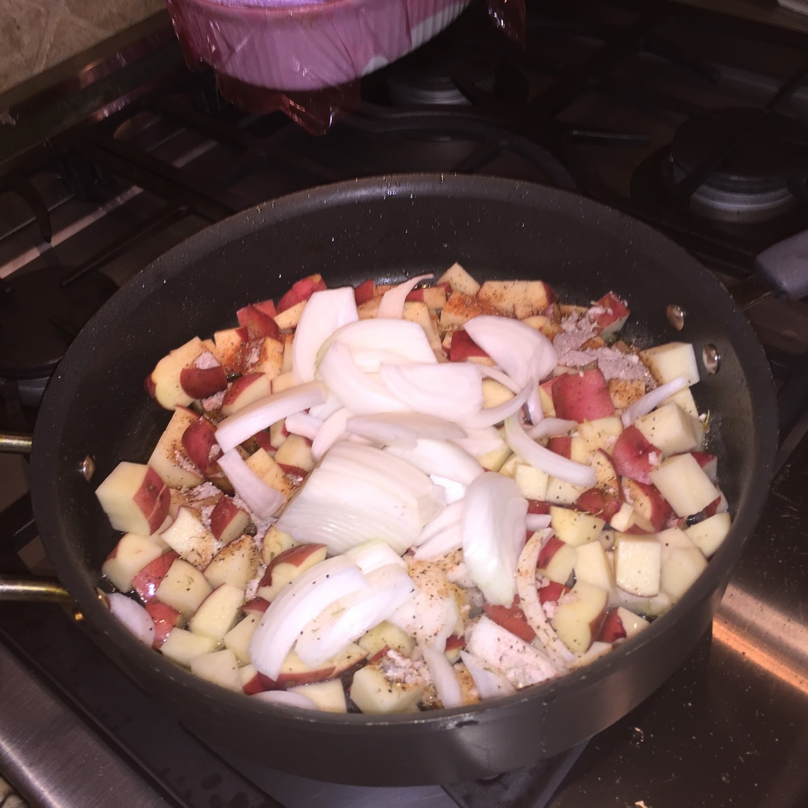 Add potatoes, onion, and Potato Salad Dry Rub to hot drippings in skillet, tossing to coat. Remove potato mixture with a slotted spoon.