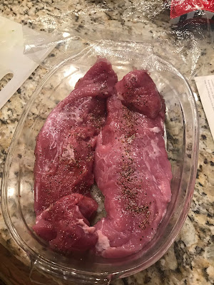 Sprinkle pork with salt and pepper, and rub all over. Let sit at room temperature 1 hour.