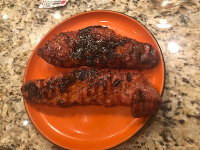 Brush pork with some preserves. Grill, turning every 4 minutes or so and brushing with any remaining preserves, until charred on all sides and an instant-read thermometer inserted into the thickest part registers 130°, 10–12 minutes. Transfer to a cutting board and let rest 10 minutes. Slice ½” thick.