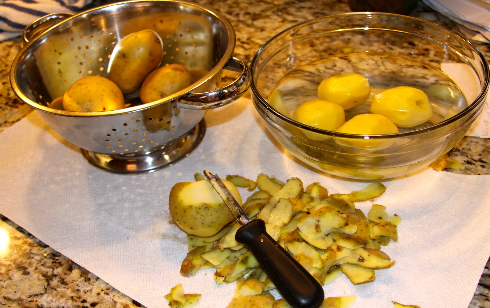 Preheat oven to 375 degrees F. Scrub potatoes and cut into wedges. Place wedges, skin side down, in a single layer on a baking dish. Mix remaining ingredients in a small bowl and brush evenly over potatoes. Bake 1 hour or until potatoes are tender. Serves about 6.