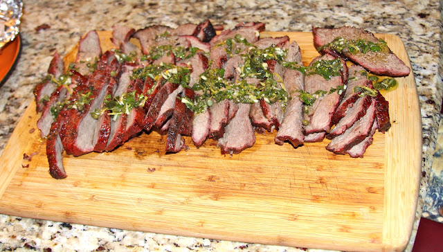 Two 1½-pound tri-tip steaks, sliced crosswise into 1¼-inch-thick planks (can also use flank steak with excellent results). For 10 people I used 3 tri-tips that were 2 1/2 lbs each. We had lots of leftovers!
