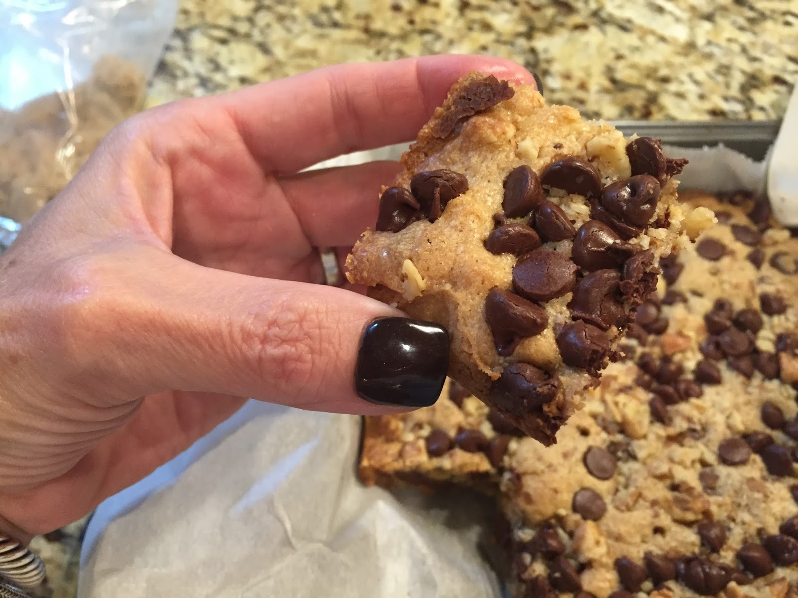 These scrumptious little bars are almost cake-like in texture, not quite as rich/buttery as other blondes I make. But they are oh so good!