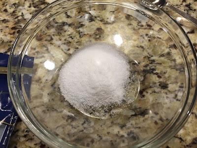 Pour boiling mixture over flour and sugar in the bowl and stir.