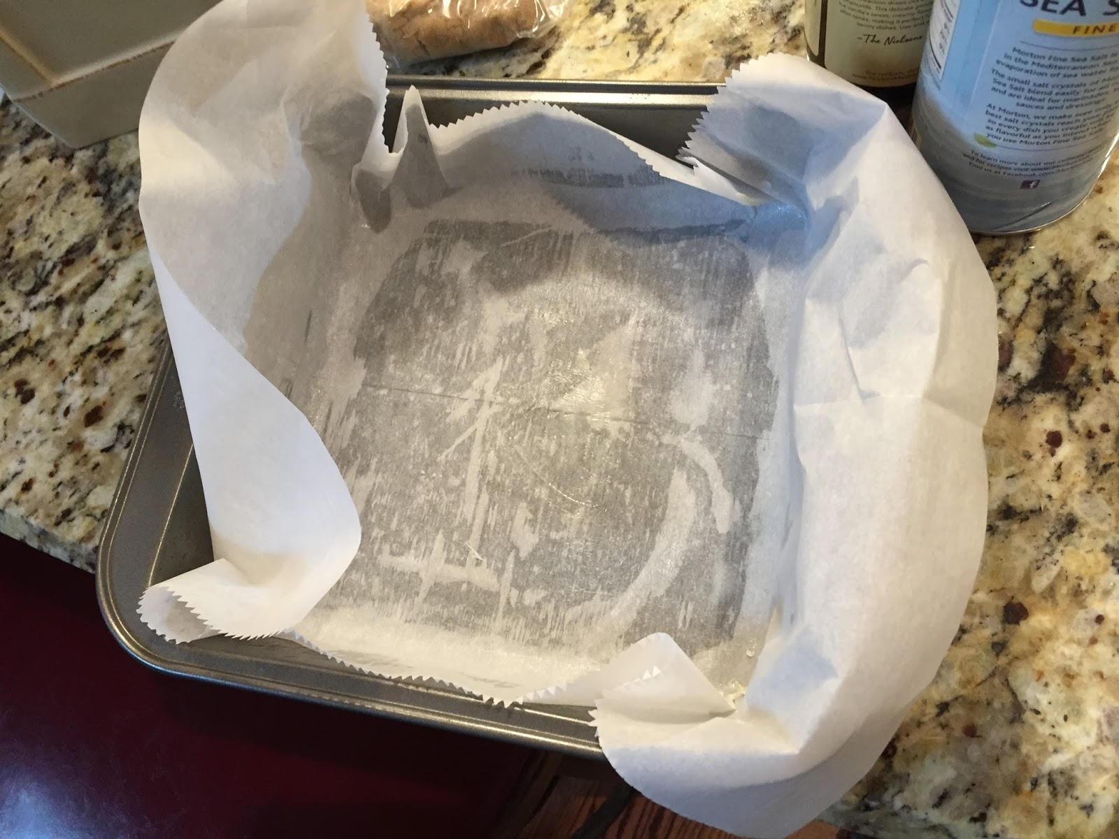 Preheat oven to 350 degrees F. Brush an 8-inch square baking pan with butter; line pan with a piece of parchment paper (or tin foil), leaving a 2-inch overhang on two sides. Butter paper.