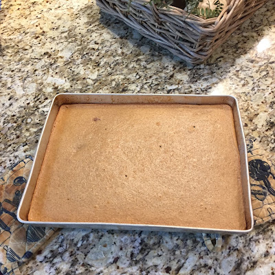 Pour frosting over warm cake after it comes out of the oven. Cool completely and cut into squares.