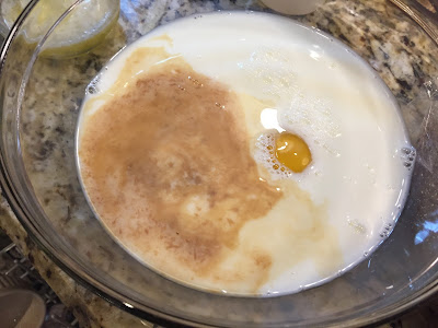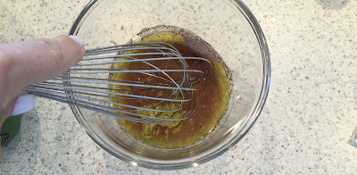 While continuing to whisk, gradually add the olive oil. Whisk until thicker. Set aside.