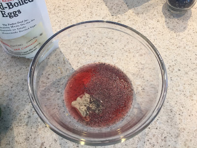 In a small mixing bowl, whisk together the red wine vinegar, mustard, salt, and pepper.