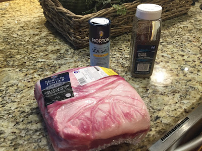 Heat oven to 200 degrees F. Season the pork with 3 1/2 tablespoons of salt and 1/4 cup black pepper, rubbing it in well on all sides. Roast the pork, covered, until the internal temperature reaches 195 degrees, 9 to 10 hours.