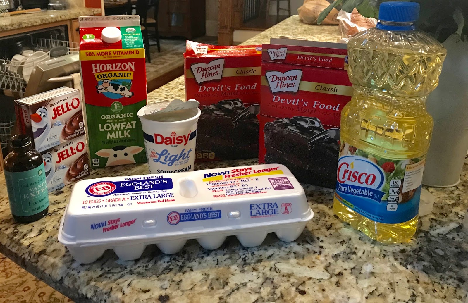 Preheat oven to 350 degrees F, and line muffin tins with baking cups. In a bowl of a stand mixer fitted with the paddle attachment or in a large bowl with a hand mixer, mix together cake mix, instant pudding, sour cream, vegetable oil, eggs, milk, and vanilla.