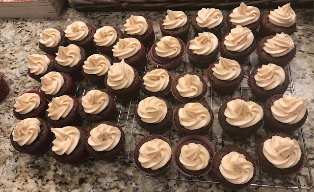 I doubled the recipe easily to feed the 50 or so staff, and it made over 60 cupcakes.