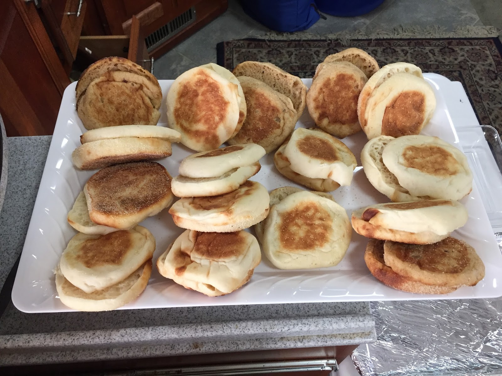 Toast the English muffin halves on a baking sheet in a 350 degree oven for 7 minutes (or use a toaster OR place them on the grill).
