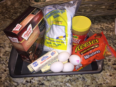 If I have time, I’m also making THIS dessert – been wanting to try it. This cake is a version of the “gooey cake” that everyone loves. I thought that since it’s fall, nearing Halloween, a Reese’s peanut butter cup version of the cake would be appropriate. As long as you like peanut butter, how BAD could it be? 😉