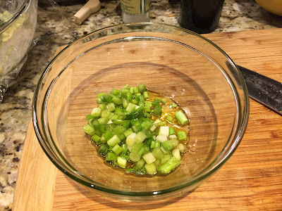 Prepare salad vegetables and place in a large bowl.