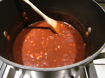In heavy saucepan mix all ingredients and bring to a boil over medium heat. Reduce heat to low and simmer for 10 minutes, stirring often.