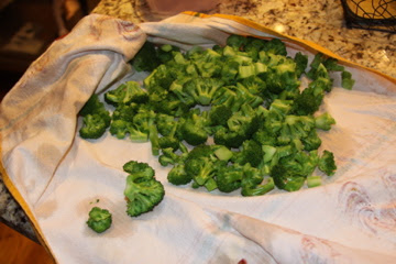 Blanch the broccoli florets and sliced stalks quickly in boiling salted