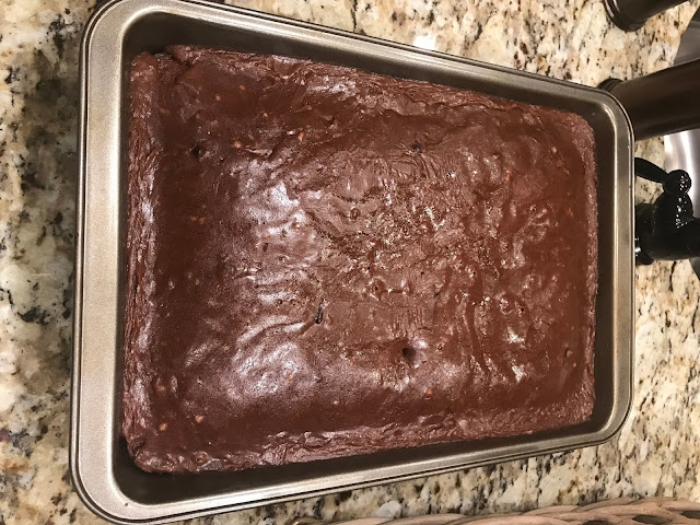 Pour warm frosting over the cake as soon as you take it out of the oven. Cool and then cut into ~ 48 bars. Freezes well.