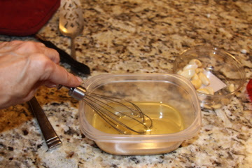 In a large bowl, whisk olive oil with garlic, lemon juice, red wine vinegar, parsley, basil, sun dried tomatoes, capers and hot chili flakes.