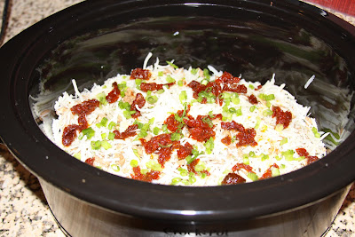 Spray a 6 quart slow cooker with cooking spray. Layer 1/2 of the potatoes on the bottom of slow cooker. Top with half of the sausage, mozzarella and Parmesan cheese, sun dried tomatoes and green onion. Repeat layering. Beat eggs, milk and pepper in large bowl with a wire whisk until well blended. Pour evenly over potato-sausage mixture.