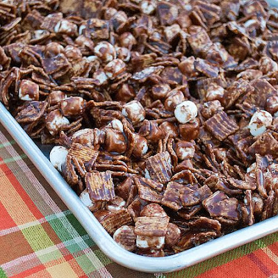 Remove from heat and stir in vanilla. Pour over cereal and stir quickly until cereal is coated with chocolate. Stir in the marshmallows.