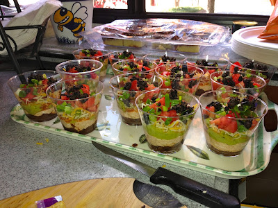 You get it – the dip that everyone loves, but it’s served in separate little cups, so it’s much easier to eat at a tailgate. I find that individual things (bars, wraps etc) are eaten much faster than large dips with chips. Layer as follows as thick or as thin as you prefer. These are my guidelines: