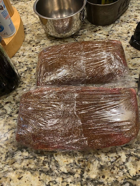 Sprinkle it all over the London broil and rub. Wrap tightly with plastic wrap and rest for 2 hours.