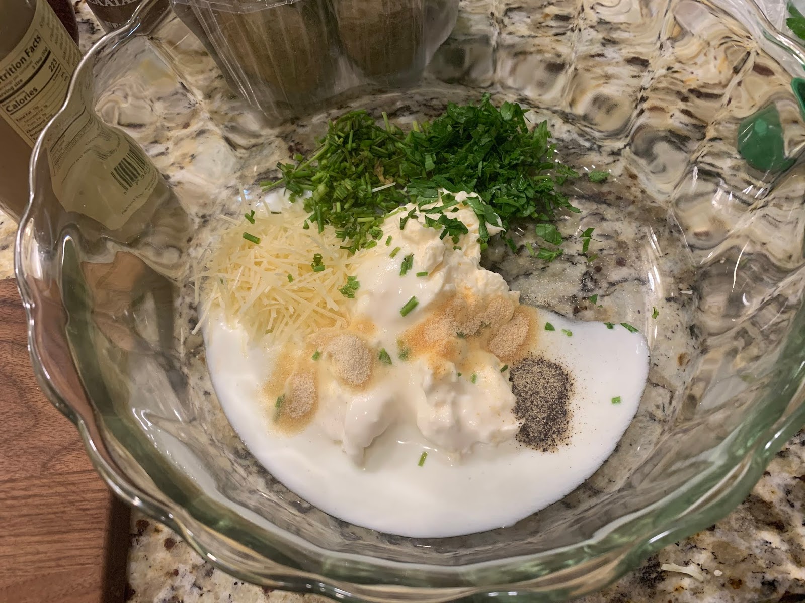 In a large bowl, combine the mayonnaise, buttermilk, Parmesan, chives, parsley, garlic powder, onion powder and pepper and mix until well blended. Taste and season with salt if needed.
