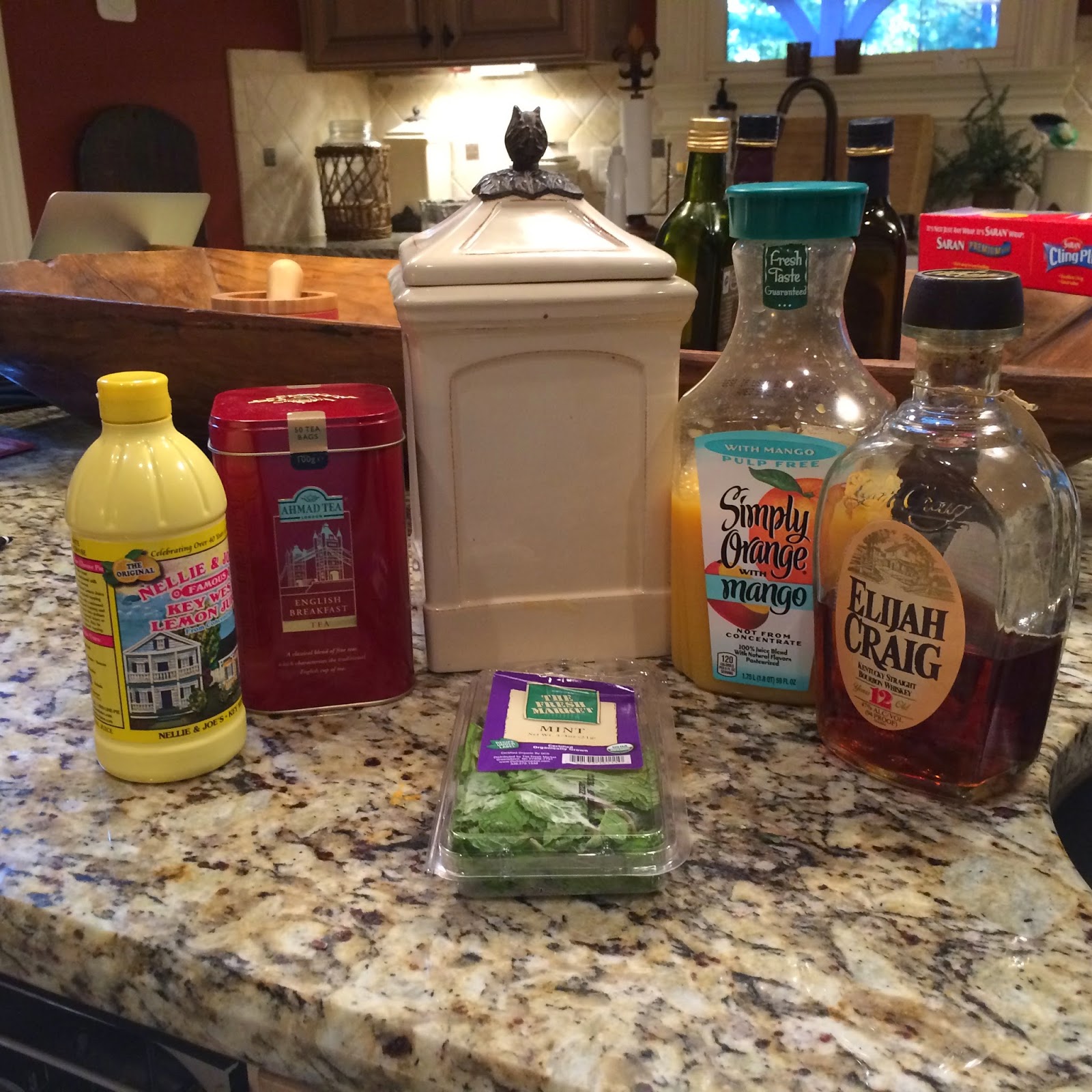 Discard the tea bags and set aside. Pour tea into a pitcher. Add bourbon, sugar, orange juice and lemon juice and refrigerate until needed.