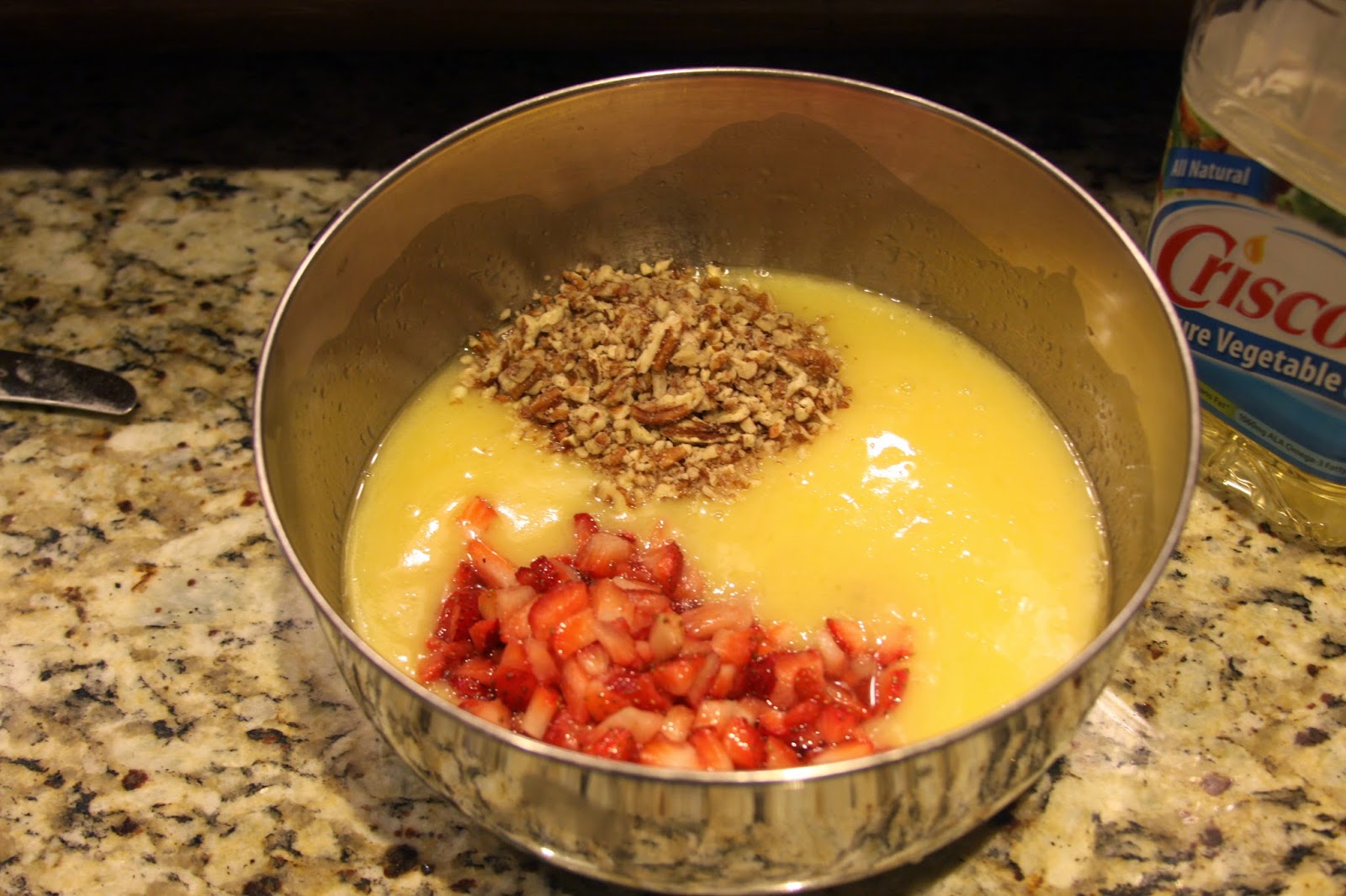 Add strawberry mixture to dry ingredients.