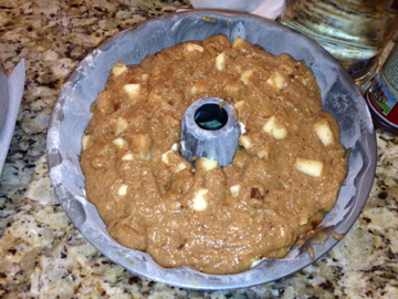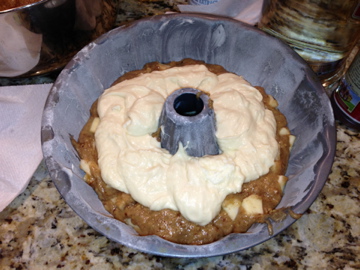 Spoon two-thirds of apple mixture into a greased and floured 14-cup Bundt pan. Spoon Cream Cheese Filling over apple mixture, leaving a 1-inch border around edges of pan.