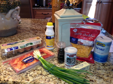 Mix in the green onions, bacon, and 1 cup of the buttermilk into the flour-butter mixture.