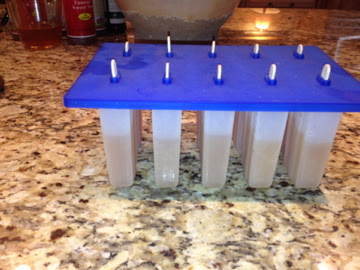 Pour into popsicle mold after first layer has frozen, and return to freezer.