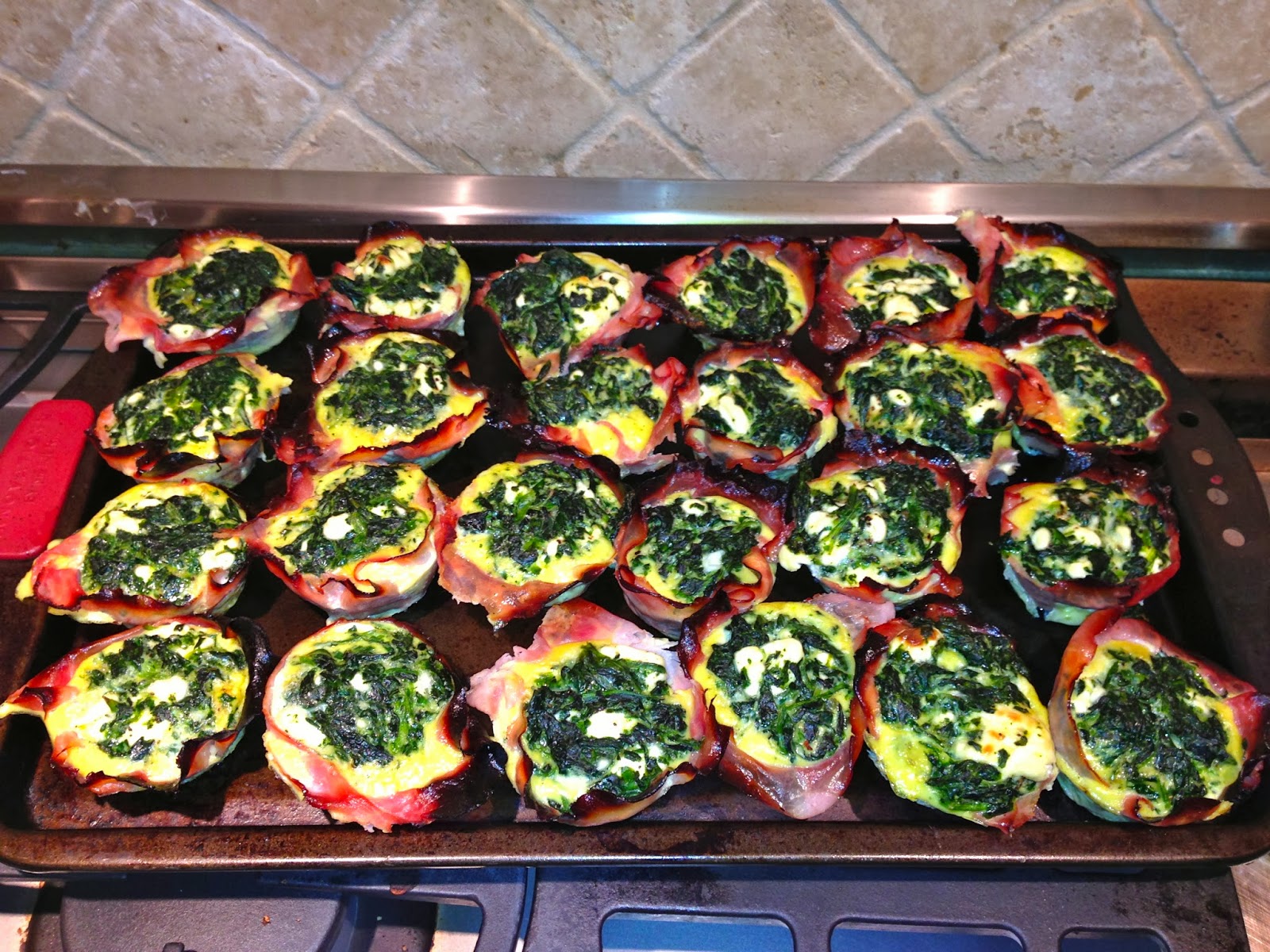 Coat 8 cups of the muffin pan with cooking spray. Divide the spinach mixture among the 8 cups (they will be very full).