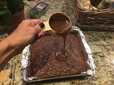 When brownies are done, remove them from the oven and immediately top with 3/4 cup of the butterscotch sauce.