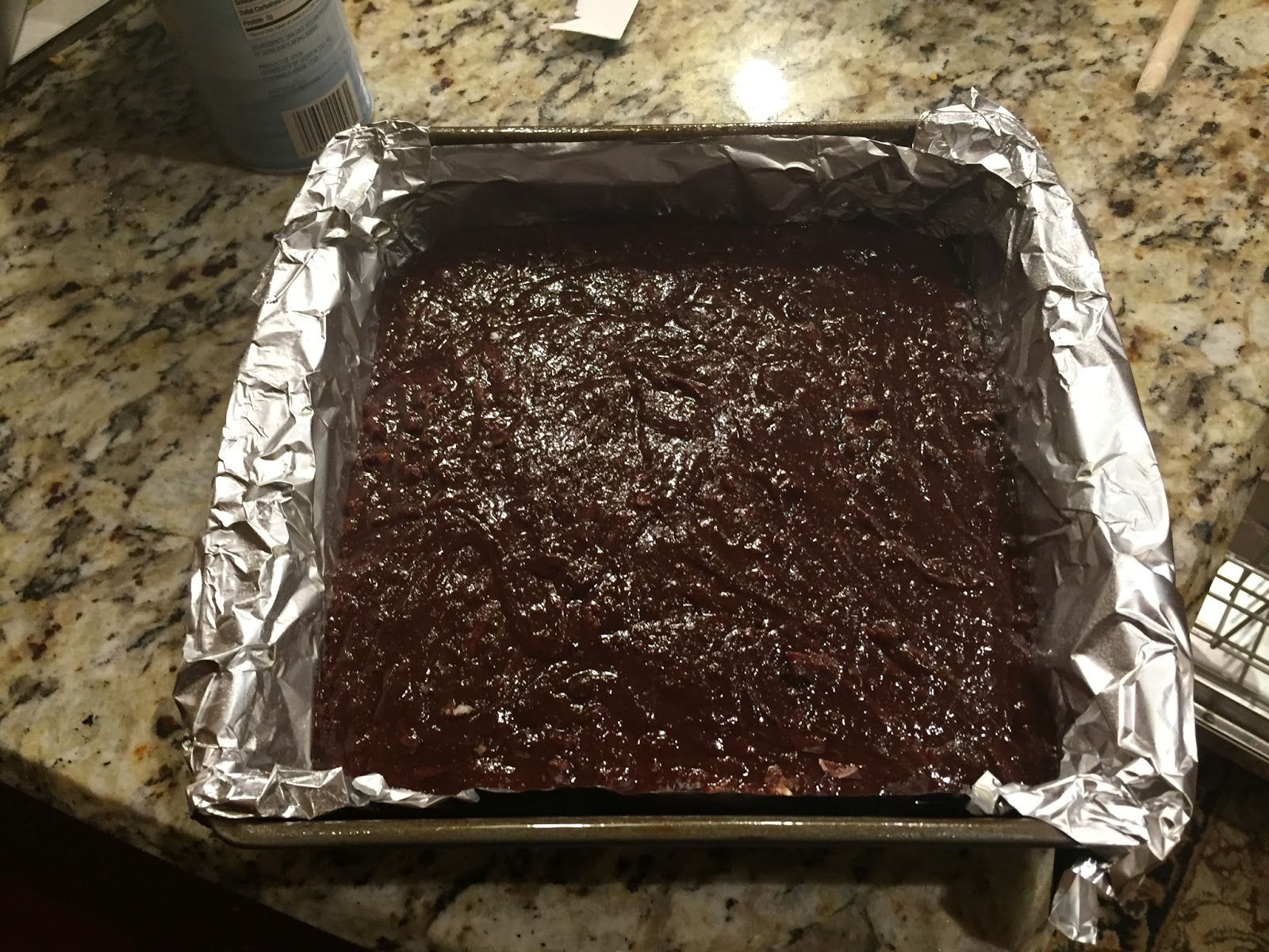 Preheat oven to 350 degrees F. Line a 9×9” pan with foil and spray with cooking spray.
