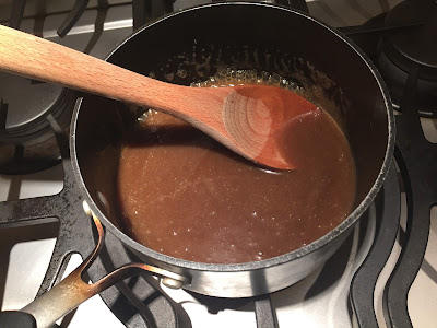 Add 1 cup brown sugar and 1/2 cup heavy whipping cream and stir until it boils.