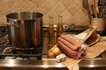 - 1 dozen brats Beer, to cover