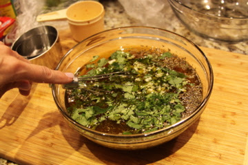 1/2 cup cilantro (chopped) 1/2 cup olive oil 1/3 cup soy sauce 1/4 cup tequila 7 garlic cloves (minced) 2 tsp lime zest 2 tsp ground cumin 2 tsp dried oregano 1 tsp ground black pepper
