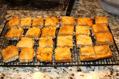 And voila! It puffed up just enough to cover the gaping holes! I’ll let it cool ~ 15 minutes, then I’ll cut into small squares. The kitchen smells delicious!!!