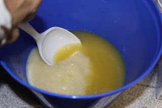 Using a rubber spatula, fold the dry ingredients into the egg mixture until just combined; do not overmix.