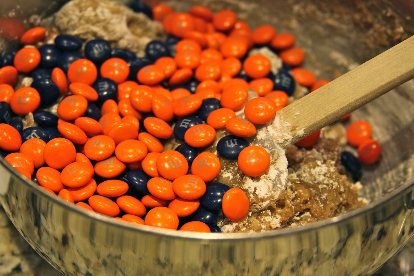 I’ll be making these with orange and navy M&Ms that I purchased in bulk from www.mymms.com.