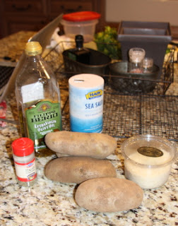 I’ll make these the day before, and simply reheat either on the grill or the microwave before serving. They’re fine at room temperature as well. 2 large potatoes, scrubbed 3 Tbsp olive oil 1 Tbsp Italian Seasoning 1 tsp salt 4 Tbsp Parmesan cheese