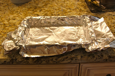 the excess hang over the edges of the pan by about 1 inch so you can grab those edges and pull the bars from the pan after they have baked.