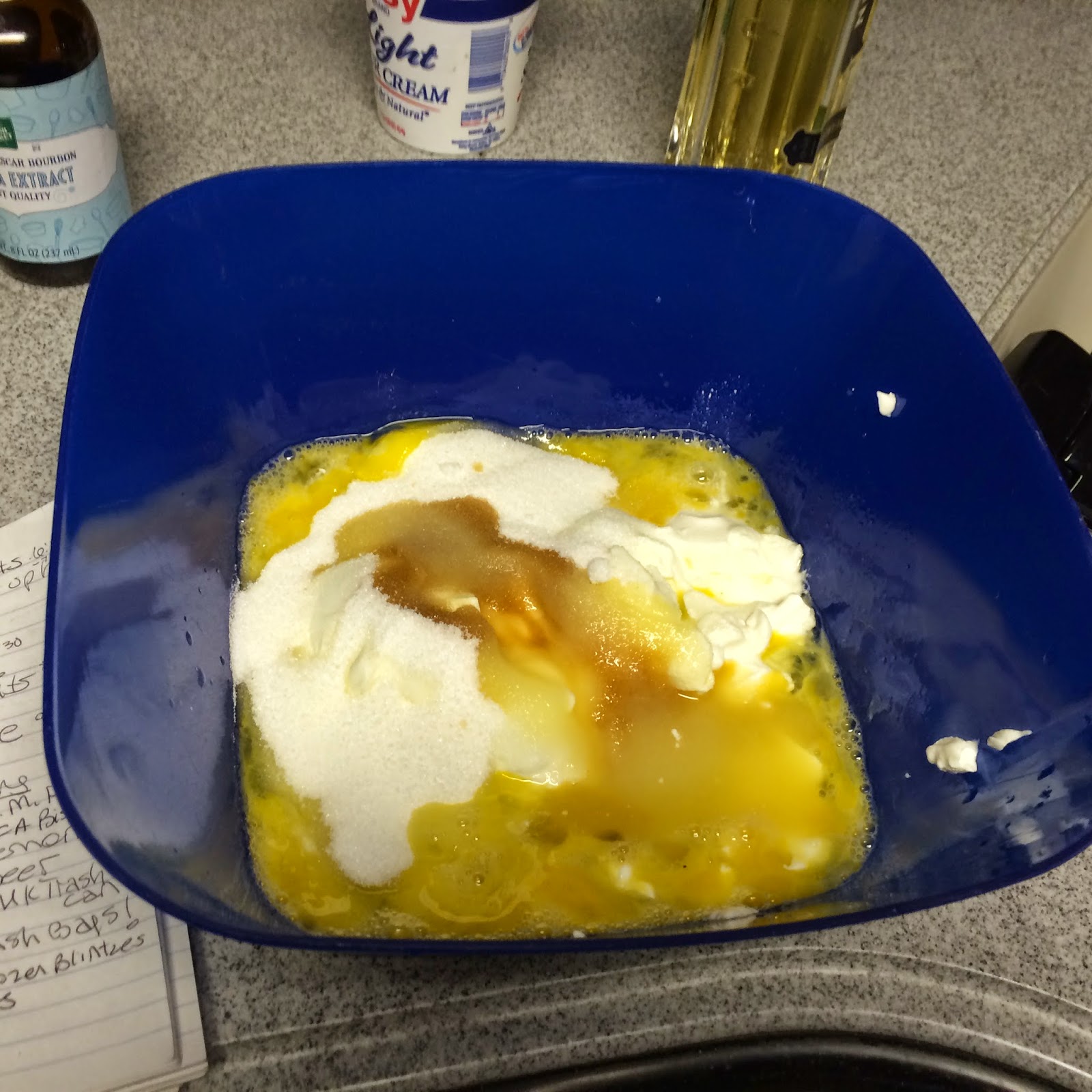 Blend the other ingredients with the eggs and pour over the blintzes.