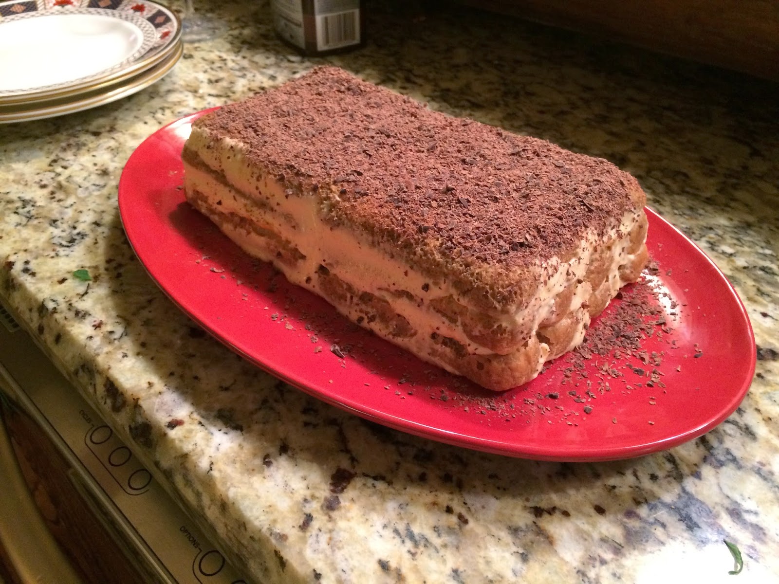Cover with plastic wrap and refrigerate over night. Gently flip the tiramisu onto a serving plate, and sprinkle with cocoa powder and grated chocolate on top.