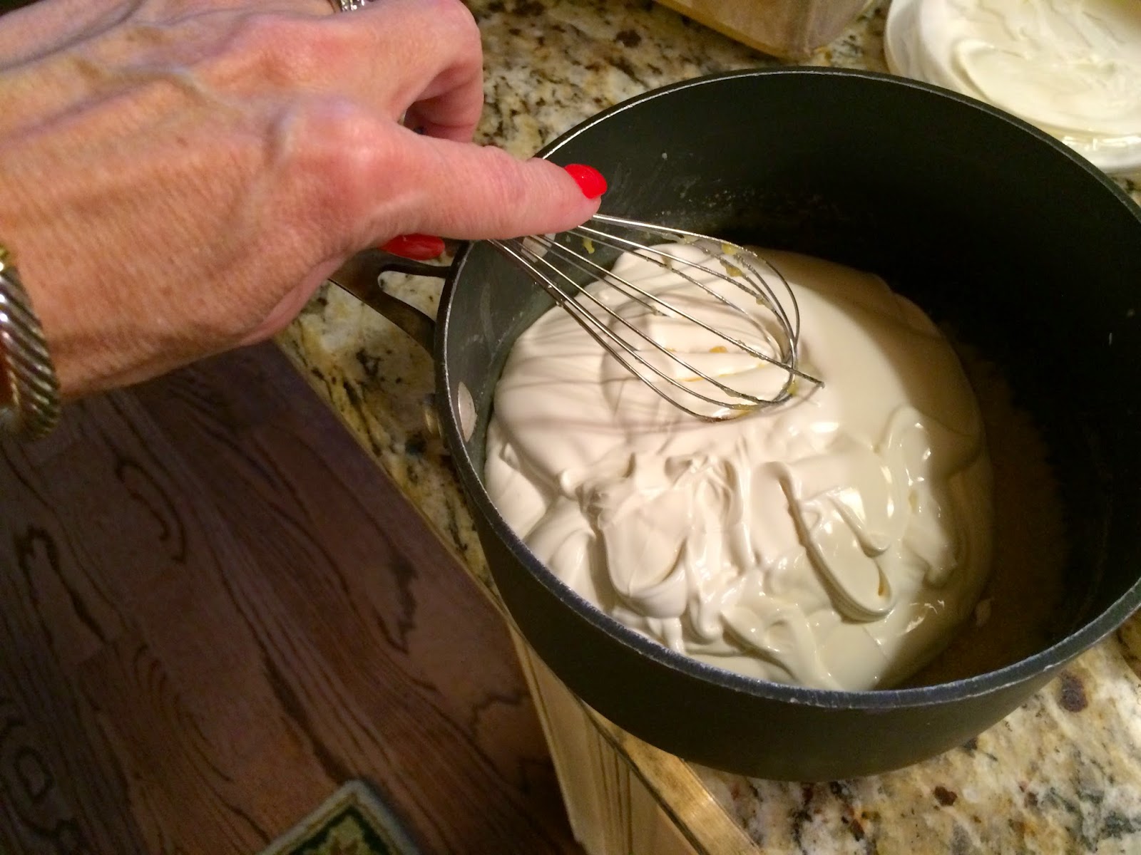 Once the egg yolk mixture is cold, whisk in 1 pound of room temperature mascarpone cheese.