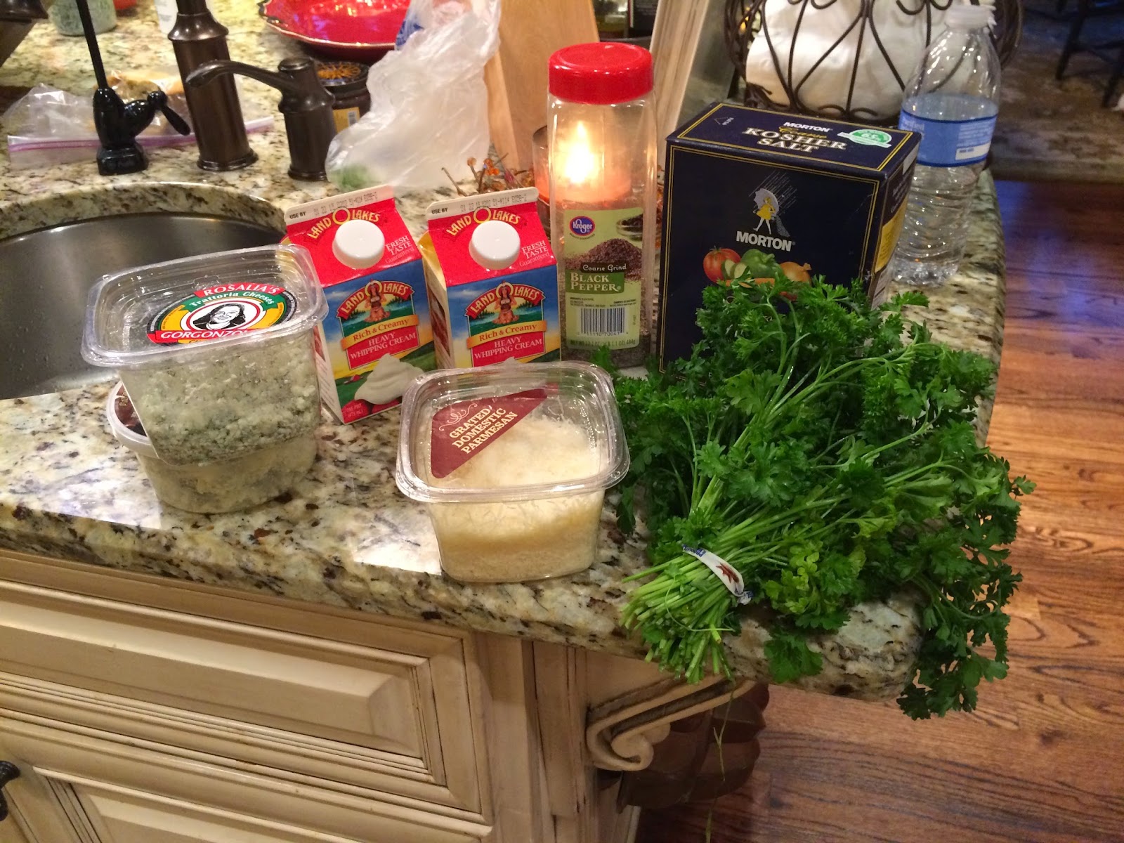 Off the heat, add the Gorgonzola, Parmesan, salt, pepper, and parsley. Whisk rapidly until the cheeses melt and serve warm.