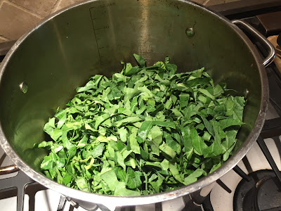 ***NOTE: I was lucky enough to find a large bag of collard greens that were not only pre-washed 3 times, but also were shredded, so I was able to skip the above steps.
