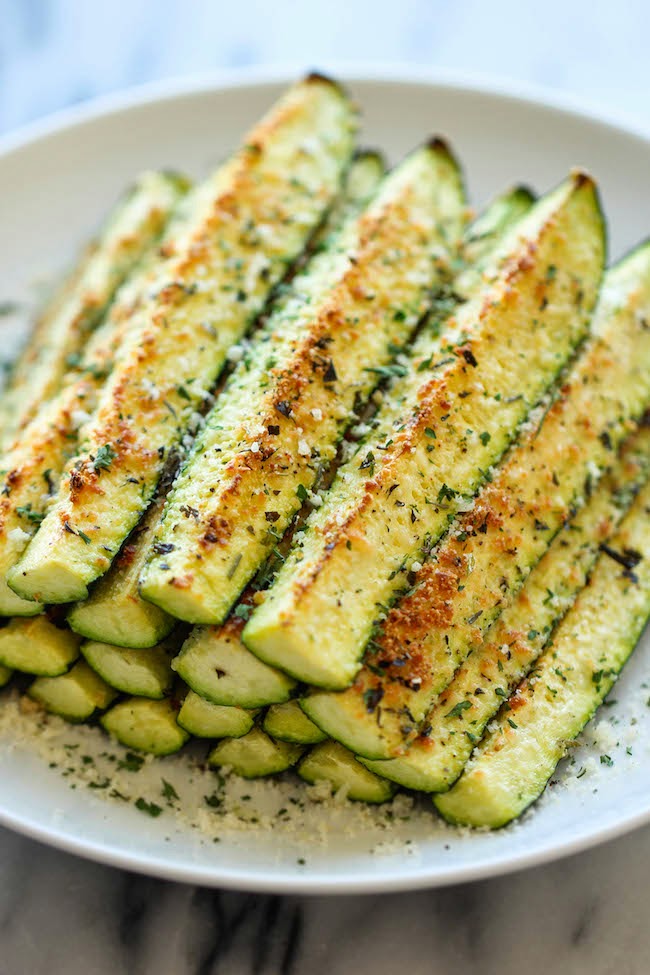 Place zucchini onto prepared baking sheet. Drizzle with olive oil and sprinkle with Parmesan mixture.