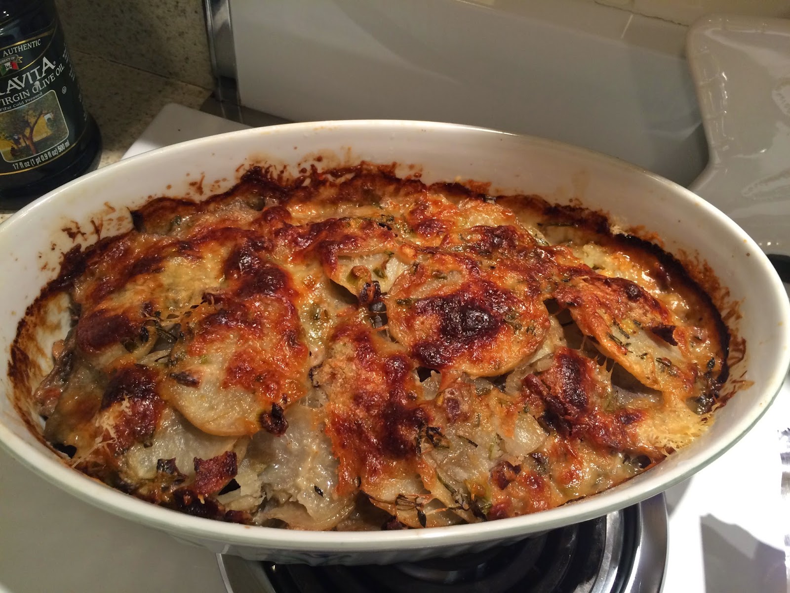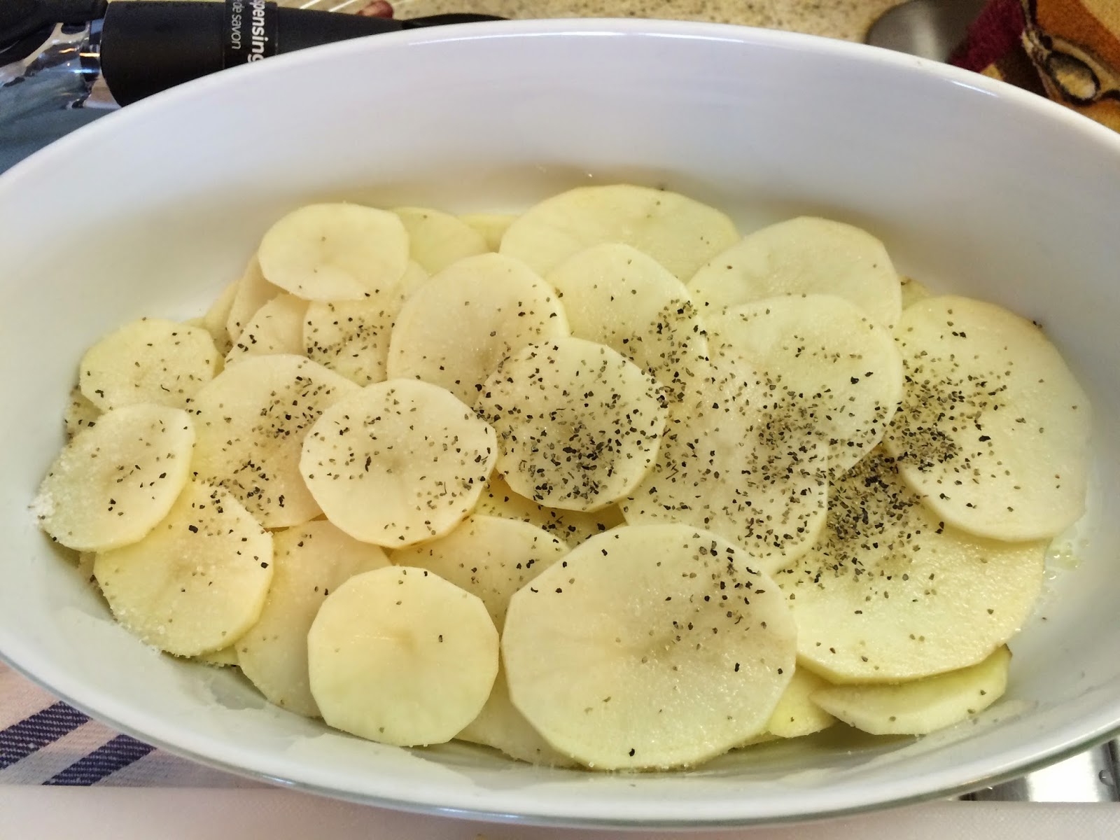 4 lbs potatoes, peeled and finely sliced (about 12 cups)